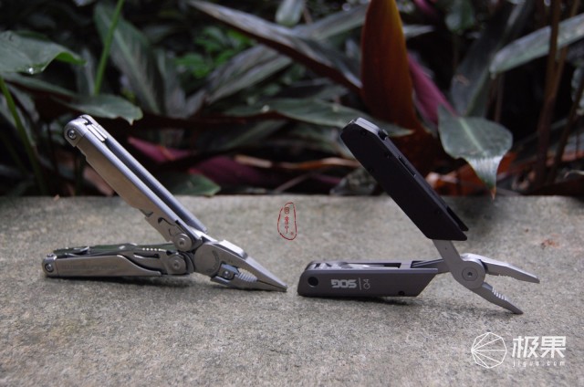 钳头连接轴有隐藏式弹性设计,平稳无松动,开合省力,夹持或固定加工件时,可以轻轻松松实现单手操作,从对比图片能够准确的看出自然放置下Q4多功能钳因弹性而处于张开状态,对于手小的女生而言单手操作会有点困难。
